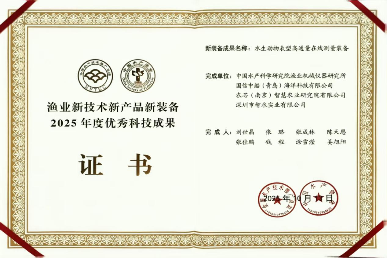 深圳市智永实业有限公司联合中国水产科学研究院渔业机械研究所、国信中船(青岛)海研科技有限公司、农芯(南京)智慧农业研究院有限公司共同研发的“水生动物表型高通量在线测量装备”,成功荣获“渔业新技术新产品新装备2025年度优秀科技成果”称号。这一荣誉标志着我国在智慧渔业装备研发与应用方面迈出了关键一步,取得了引领性的技术突破。